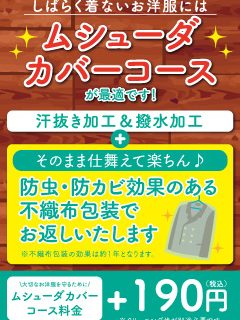 しばらく着ないお洋服には「ムシューダカバーコース」が最適です!!