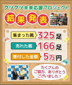 クツクツ未来応援プロジェクトの結果発表! 2025/11/25 \クツクツ未来応援プロジェクトの結果発表/ 当店では9~10月に子ども靴の回収&販売を実施し、なんと300足を超える寄付&100足を超えるお迎えがございました!! お迎えがあった靴の売上金額は全て、子ども食堂へと寄付をさせていただき、無事にプロジェクトを完了することができました。 ご協力ありがとうございました! これからもどうぞ、ホームドライ富山をよろしくお願いいたします!