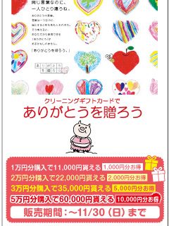 年に一度の特別企画!ギフトカード販売中♪ 2025/11/01 ご自分へのご褒美としてお洋服のクリーニングに使ったり 親しい方、お世話になった方へのプレゼントとして贈ったりと、様々な使い道のあるギフトカードを現在販売中! ギフトカード販売は年に一回の特別企画となっています。 もちろんギフトカードもポイントでご購入いただけます◎ またこちらはワイシャツチケット購入時にもお使いいただけますので、とっっってもお得ですよ! ★ギフトカードの販売は11/30(日)まで★ ギフトカードも無くなり次第終了です。 お急ぎくださ〜い。