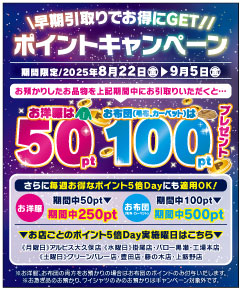 《期間限定》早期引取りでポイントGET!